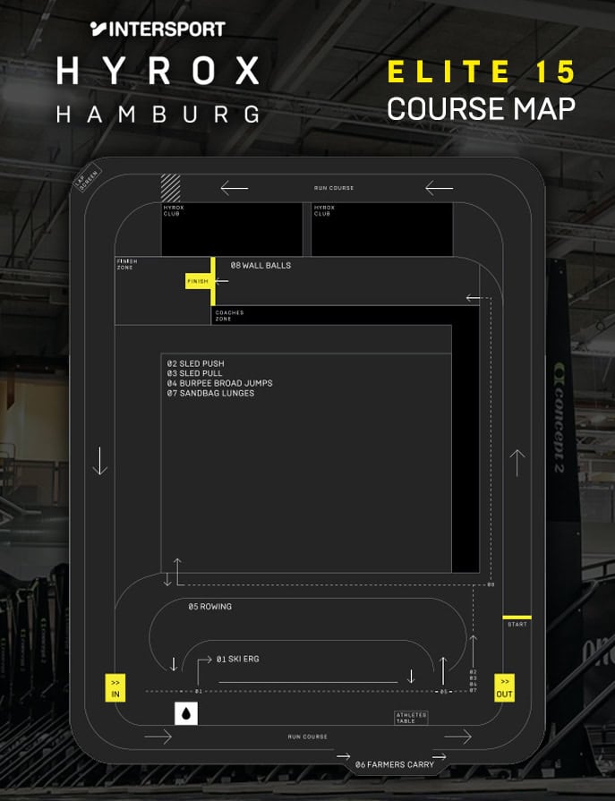 2025 HYROX Hamburg Course Map + Grid Format for Elite 15